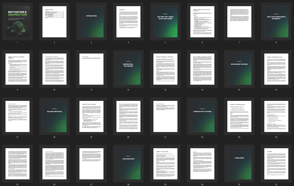 This motivating Ebook is your complete guide to staying productive, focused, and inspired in both work and life. It provides clear, actionable strategies to help you build lasting motivation, overcome procrastination, and create daily routines that support consistent progress. You’ll learn how to set realistic, meaningful goals and follow through with discipline and purpose. With proven techniques for managing distractions, improving focus, and using time more effectively, this guide helps you take control of your energy and mindset. Each chapter offers step-by-step tools for building strong, positive habits that lead to long-term success. Whether you’re striving for personal growth or professional achievement, this ebook equips you with the structure, clarity, and motivation to keep moving forward with confidence.
