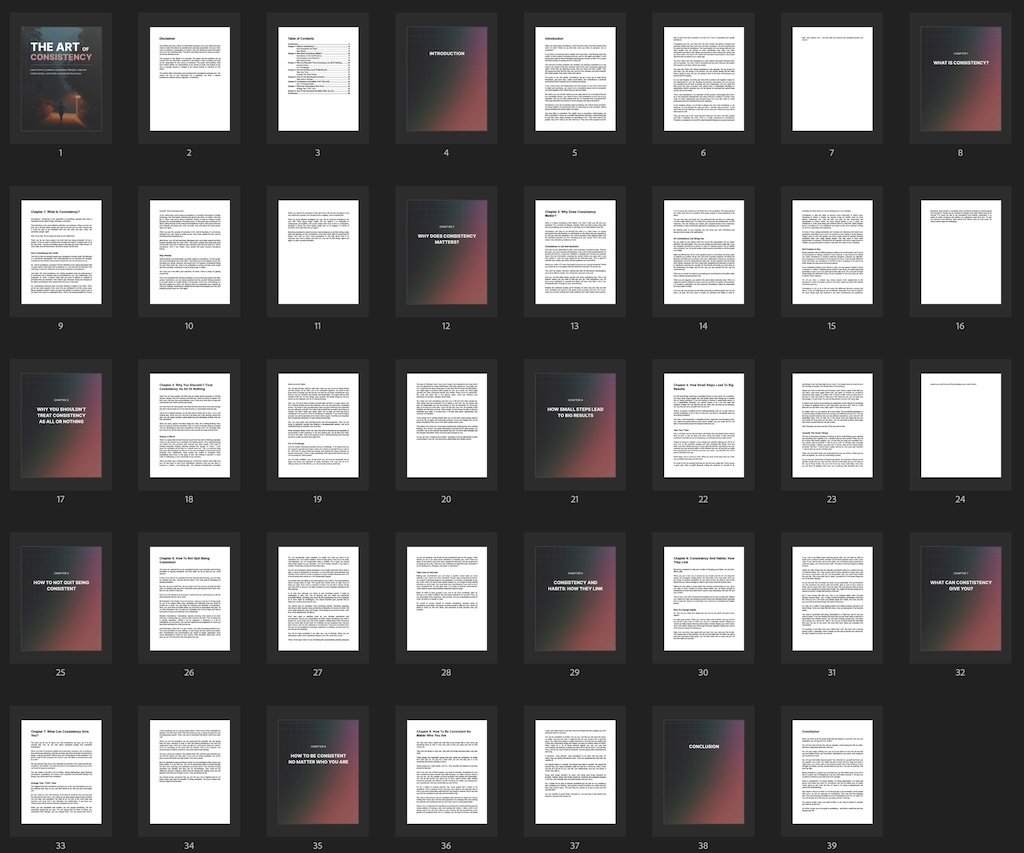 This E-book offers practical tools and strategies to help readers build consistency in both their personal and professional lives. With step-by-step guidance on forming habits, setting clear goals, and staying motivated, it provides actionable methods for creating routines that last and overcoming common distractions. Readers will also discover how to balance consistency with flexibility, strengthen relationships through reliable actions, and use steady progress as a foundation for improved performance, personal growth, and long-term fulfillment.